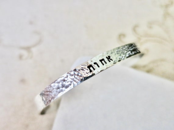 Hebrew Name Bracelet: Hand Stamped Sterling Silver Bar, Judaica Jewelry