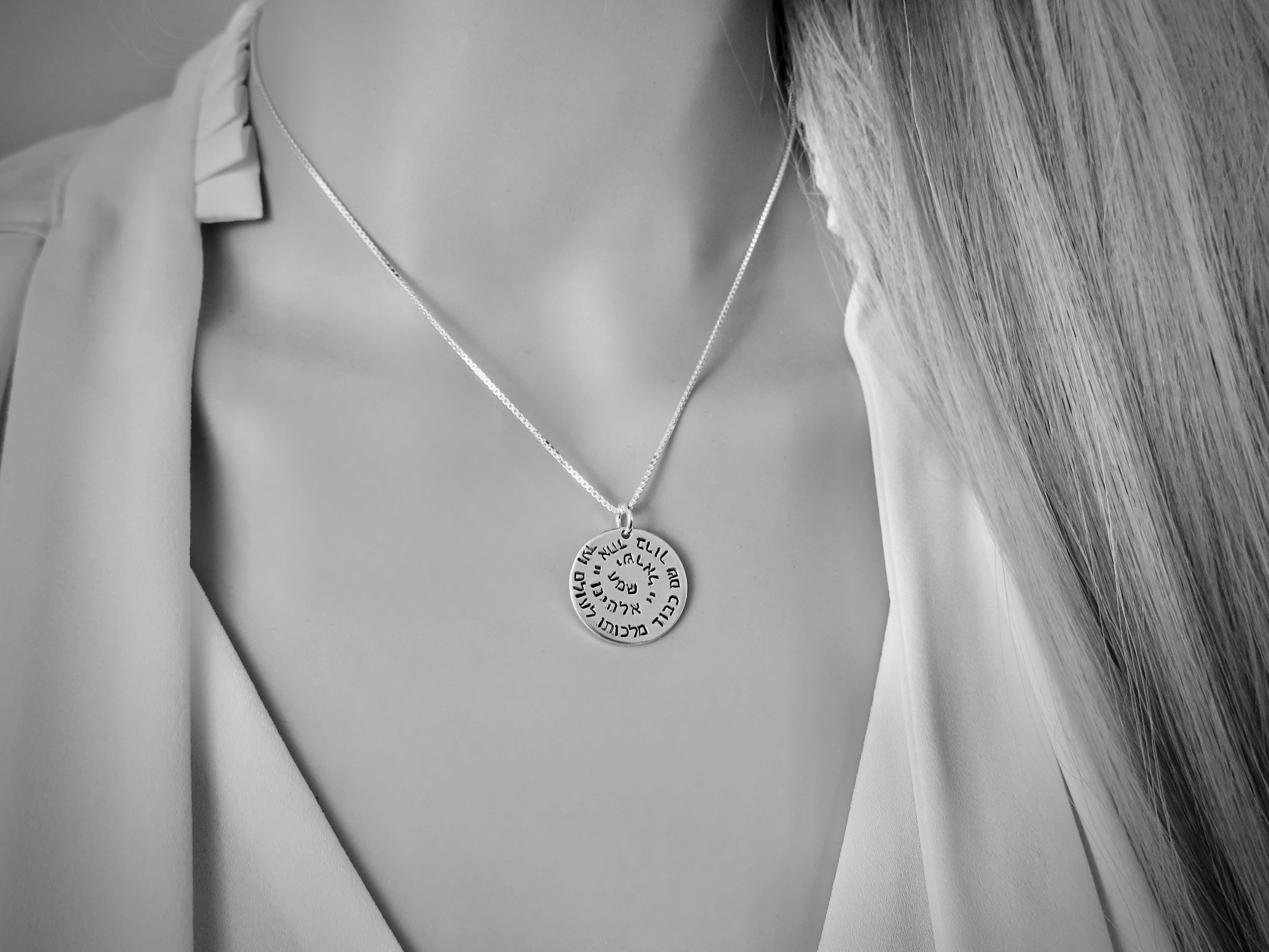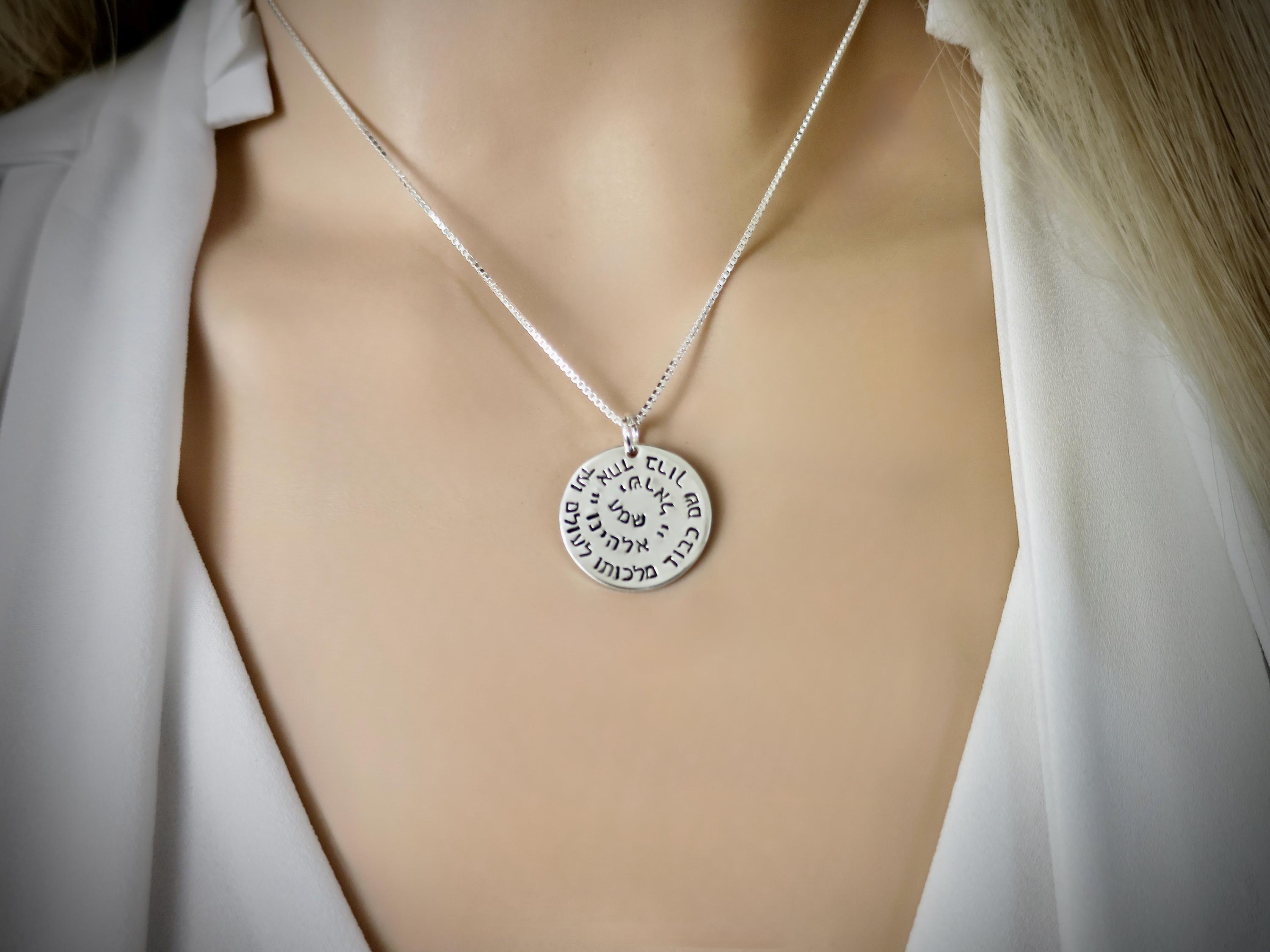 Carry the most sacred prayer of Judaism close to your heart with this beautifully handcrafted sterling silver Shema Yisrael necklace. Each piece is carefully hand-stamped with the ancient Hebrew text, creating a meaningful and personal expression of faith.