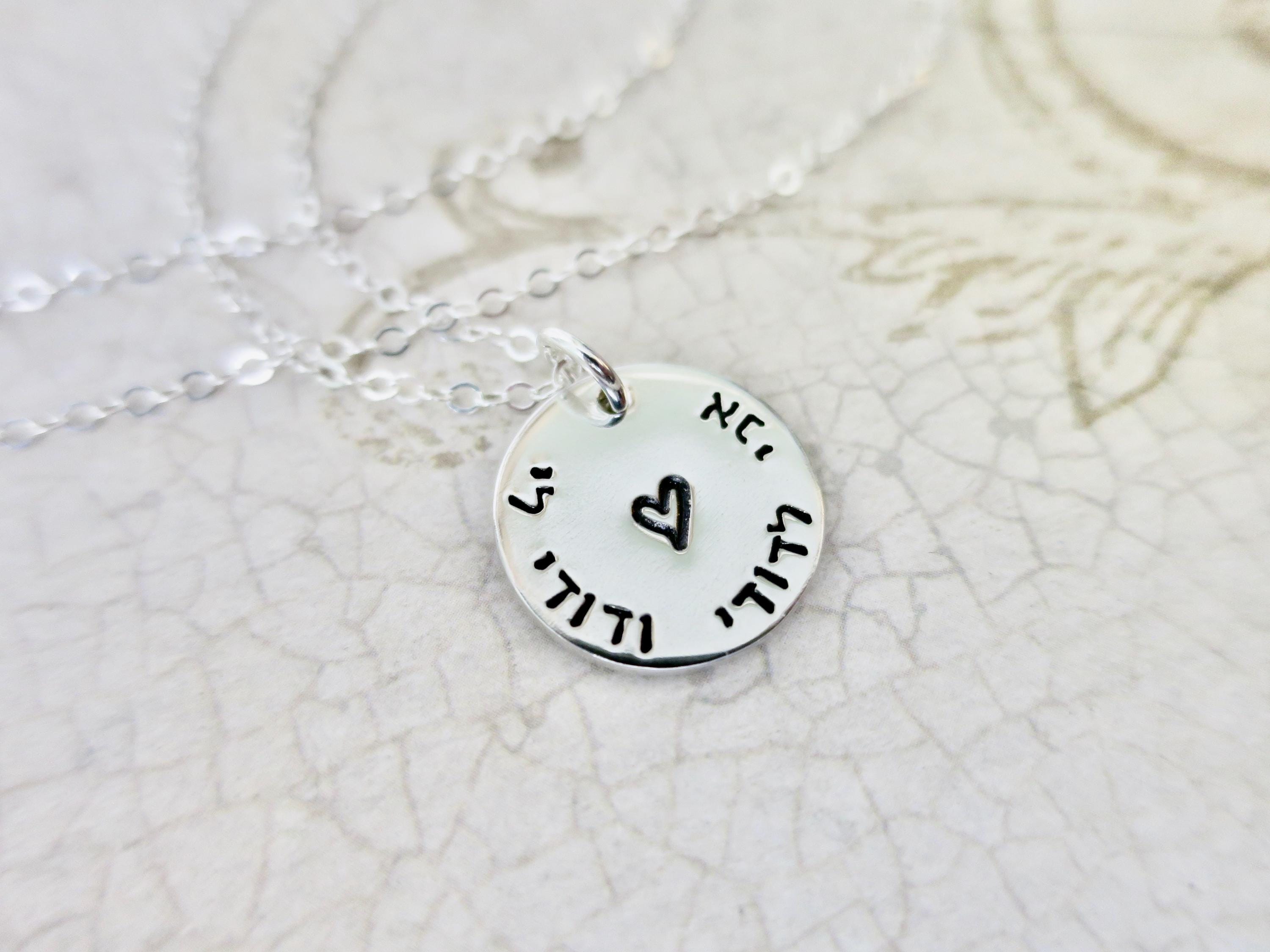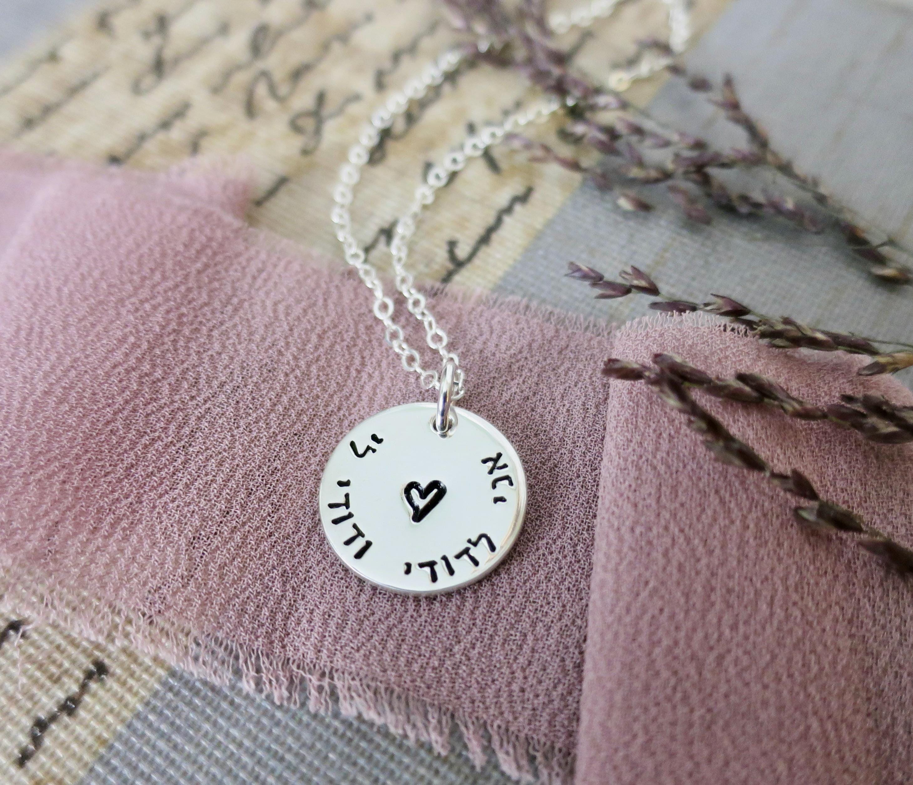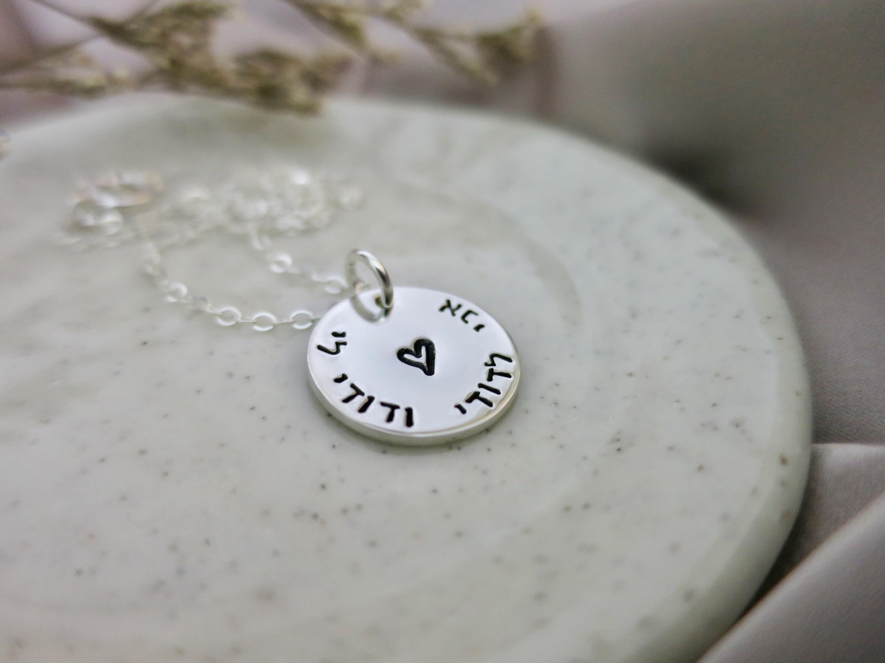 A beautiful expression of devoted love, this handcrafted sterling silver pendant features the timeless Hebrew phrase "Ani l'dodi v'dodi li" (I am my beloved's and my beloved is mine) from Song of Songs 6:3.