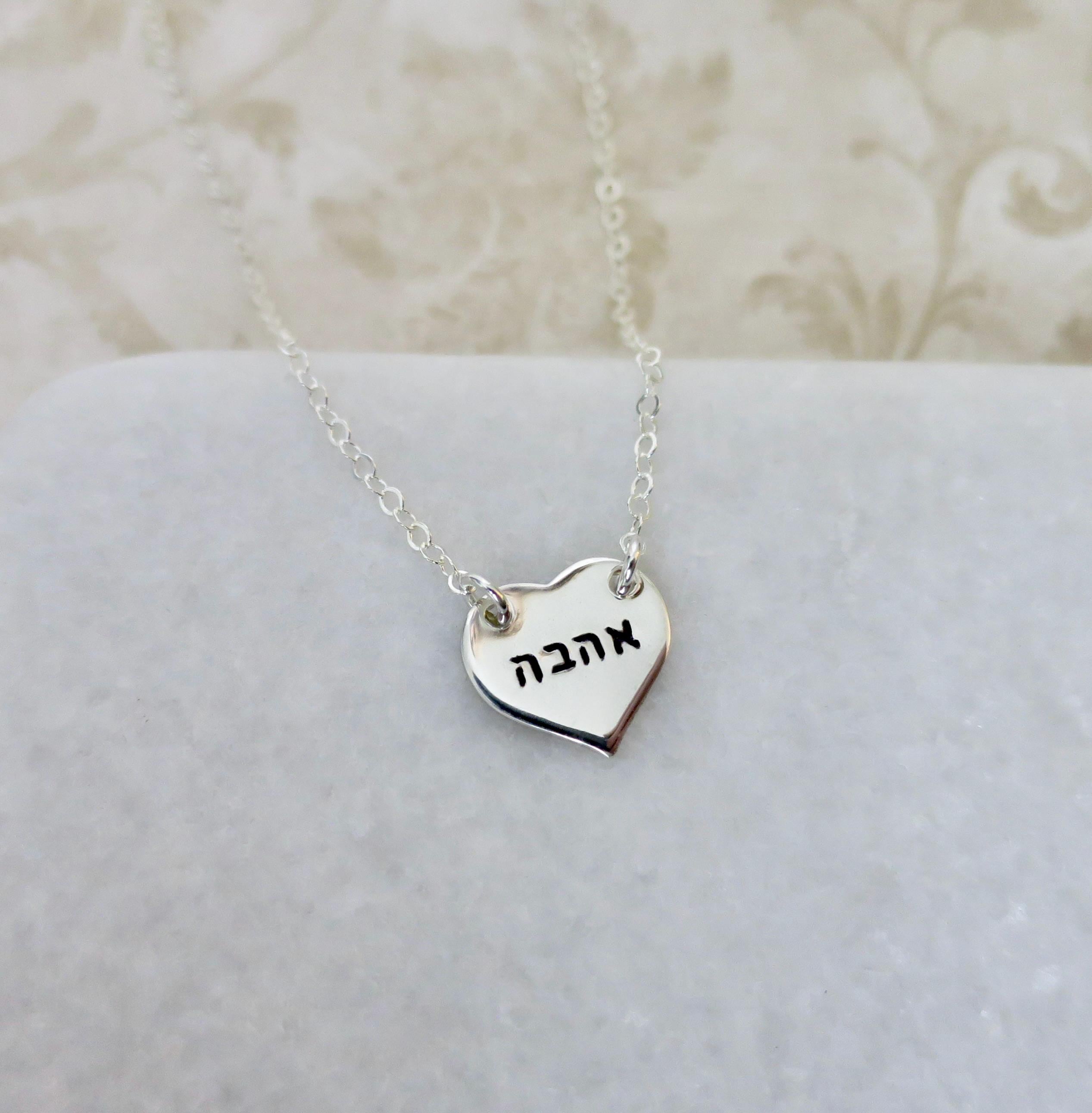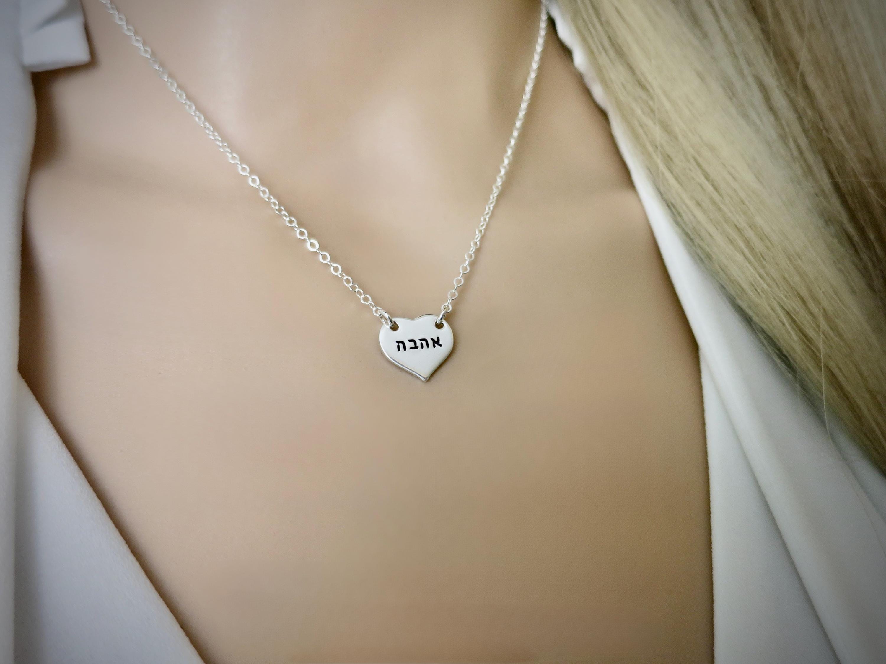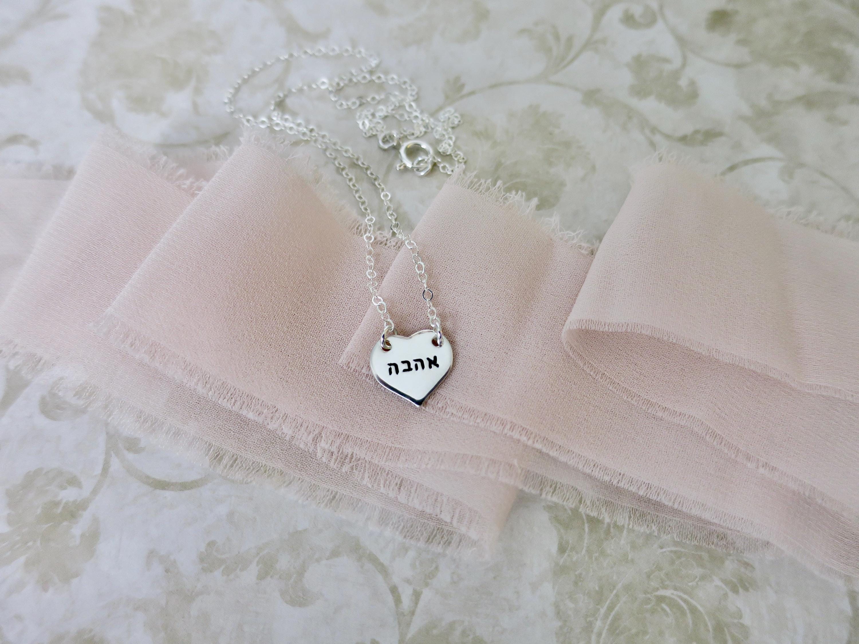 A delicate expression of love in its most timeless form. This handcrafted sterling silver heart pendant features the Hebrew word "Ahava" (אהבה) - meaning "love" - elegantly displayed across the center in a refined 1.5mm Modern Hebrew Block font.
