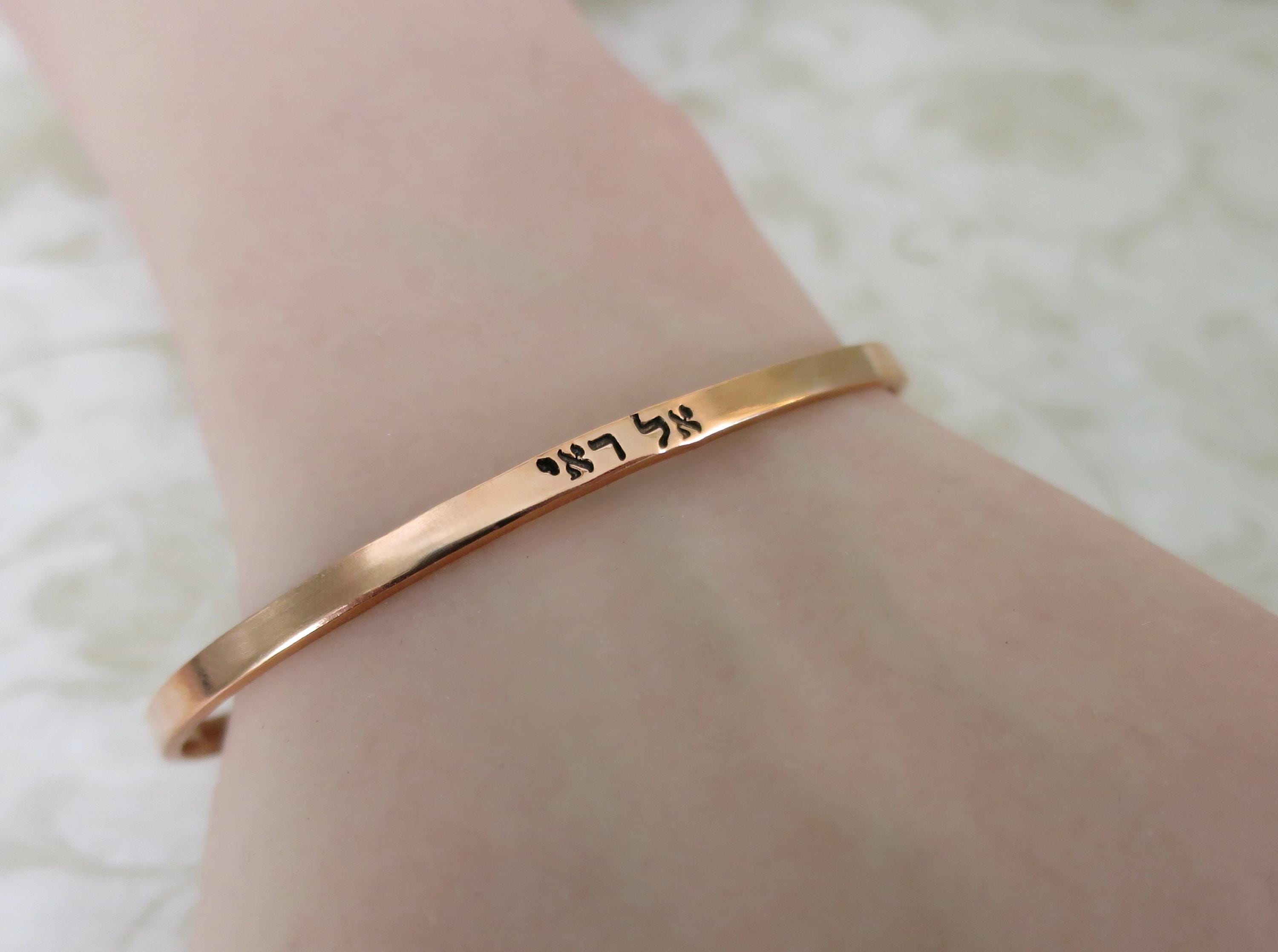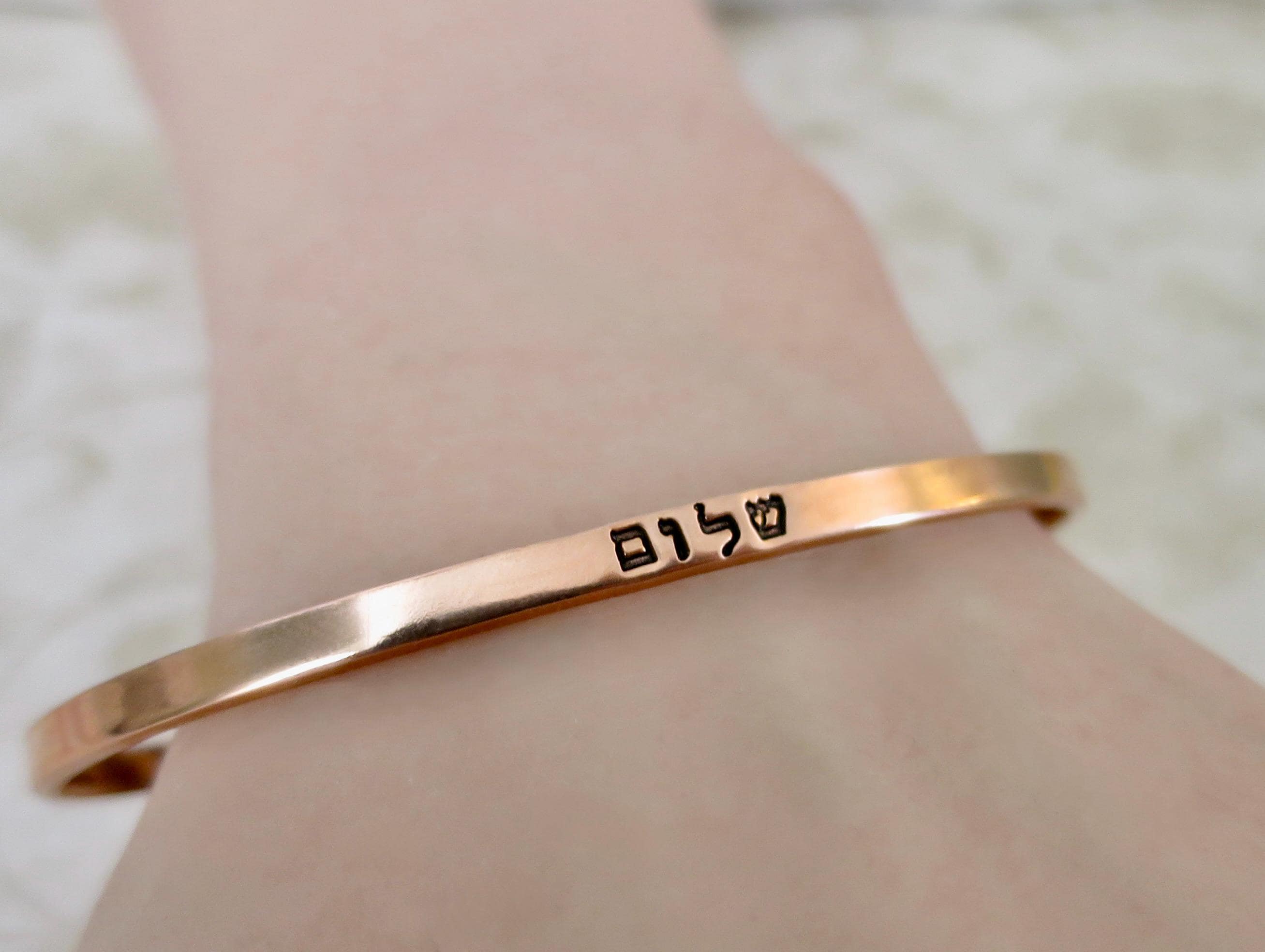 Custom Hebrew Hand Stamped Copper Cuff — Skinny Stacking Bracelet