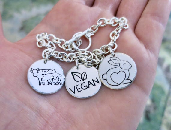 Hand Stamped Vegan Charm Bracelet: Sterling Silver Animal Rights Jewelry
